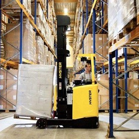 Like a turret truck, a reach trucks is compact, maneuverable forklifts designed to work in narrow aisles and is capable of lifting pallets weighing up to 2,500kgs over 10 metres.