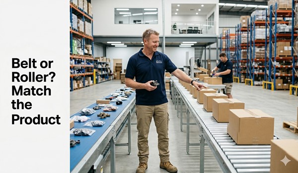 Belt and roller conveyors solve different handling problems, but the wrong choice shows up in two ways: a belt conveyor moving cartons on a flat run where gravity rollers would cost nothing to operate, or a roller system dropping small items through the gaps because the product was never suited to rollers in the first place. The decision should be made on product type and handling profile, not conveyor price.