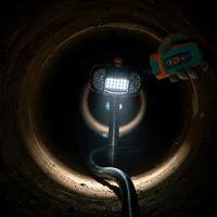 Our lowest cost drain camera system utilizes a 23mm diameter camera, which is good for using in small pipes as it can get around bends reasonably well, and our camera heads have a flexible spring coupling to allow the camera head to pass through bends without getting stuck or caught inside pipes. Most camera lenses utilise CMOS sensors, which are cheaper to manufacture than the high end CCD sensors. As a general rule, the CMOS sensors are found in all but the high end units, and they work fine for general drain and sewer inspections. In low light applications, they are not as good as the CCD sensors, but on a positive note, they use far less power to operate. All of our cameras have LED lighting around the lens to illuminate whatever is in front of the camera. It sometimes is possible to utilise an infrared night vision camera, but the big disadvantage with that, is that the image from infrared will be in black and white and the details are not as clear as the camera heads with true LED lighting. Our cameras have adjustable LED lighting which allows the user complete control over the lighting levels in the pipe, enhancing details further, and allowing lighting to go further up the drain or sewer pipe if necessary.