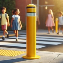 Designed with internal spring or energy-absorbing systems, these bollards reduce the force transferred on impact. They’re ideal for logistics centres or any area where vehicles operate at speed near pedestrian zones.